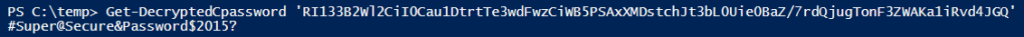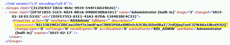 Once the policies and startup scripts are downloaded, the next thing an attacker will do is to search for the term cpassword. The cpassword is the encrypted version of this password using AES encryption. However, Microsoft published the AES private key which can be used to decrypt this value, giving you the cleartext password.