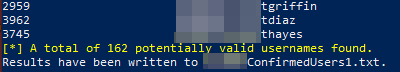 Now that you’ve got the suspected Active Directory domain name, we need some usernames that we’re going to try and validate. Keep in mind this is an online process with an associated timing delay, so it is not going to be super speedy. You can usually try somewhere between 700 and 1000 usernames an hour, depending on your Internet speeds and the response time of the target. With that in mind, we want to test high probability usernames first. To get these potential usernames, I generally use a two-pronged approach: